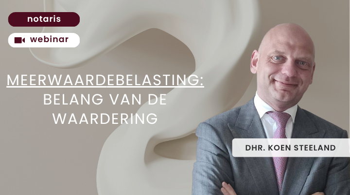 De meerwaardebelasting roept vele vragen op. Tijdens deze eerste reeks van opleidingen wordt ingegaan op het belang van de waardering, vastgeklikt op uiterlijk 31 december 2025. Hoe gaat u als notaris om met deze ‘problematiek’ in het kader van een overdracht van het familiebedrijf of onderneming? Wat met waardering bij kapitaalsaanpassingen of fusies? Hoe om te gaan bij verschillen tussen waardering door de revisor of accountant en deze van de fiscus? Vele vragen worden beantwoord aan de hand van concrete casussen. Afgestemd op uw praktijk als notaris.